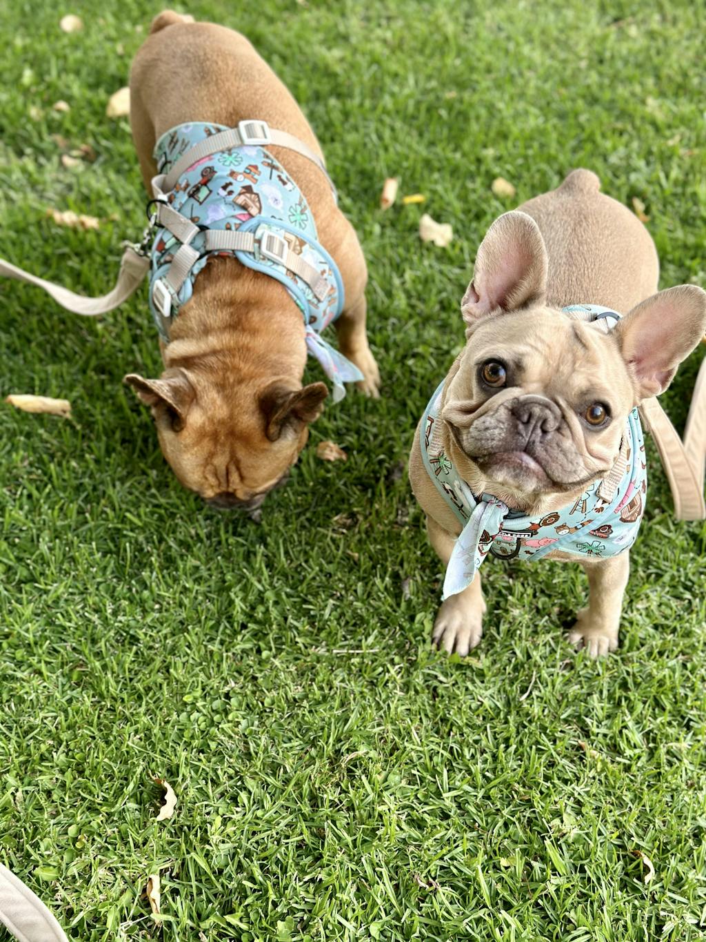 - The harness is fully adjustable with polyester webbing neck and chest straps with custom prints
